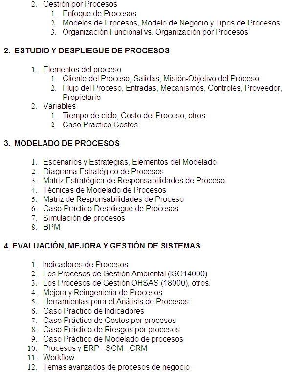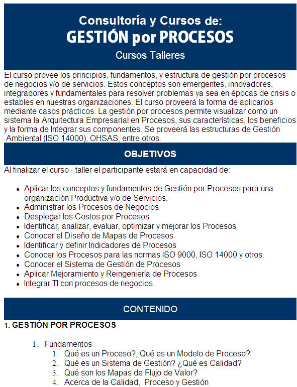 CURSOS DICTADOS DE GESTIÓN POR PROCESOS Y AFINES: