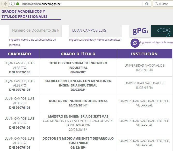 2018/01/21 SUNEDU.GOB.PE: Luis Alberto Lujan Campos. Grados Academicos por www.NEOSISTEMAS.org
